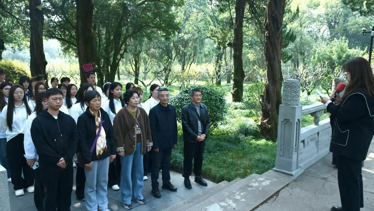 随后,师生代表与社区同志共同向张謇先生墓敬献由学生亲手制作的菊花。一束束素净的手工花,凝聚着青年学子对先贤的敬仰之心,也为庄重的祭扫仪式增添了一份朴素而真挚的情感温度。