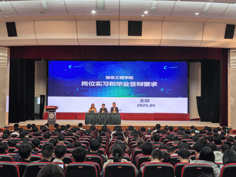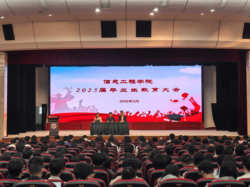 为切实做好2025届毕业生教育管理工作,引导学生高质量完成学业、顺利步入社会,信息工程学院于5月9日在崇川校区大礼堂召开2025届毕业生教育大会。学院领导班子成员、毕业班班主任、辅导员及全体2025届毕业生参加会议。会议由学院党总支副书记高飞主持。