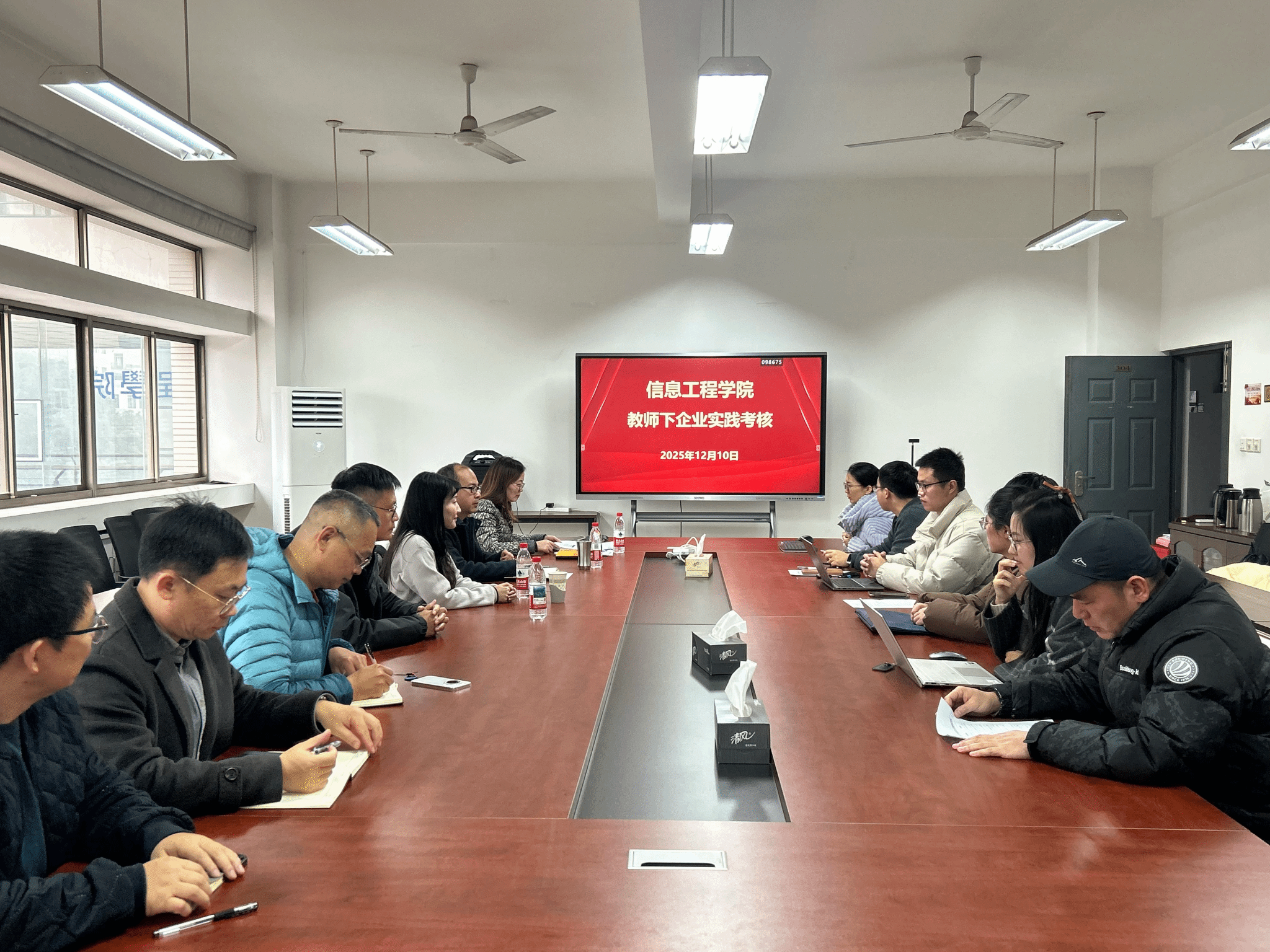 12月10日,信息工程学院组织召开教师企业实践考核汇报会。会议由副院长朱海荣主持,学院党政班子成员及部分专业负责人、教师代表组成考核组,对七位下企业实践的教师进行集中汇报与考核。