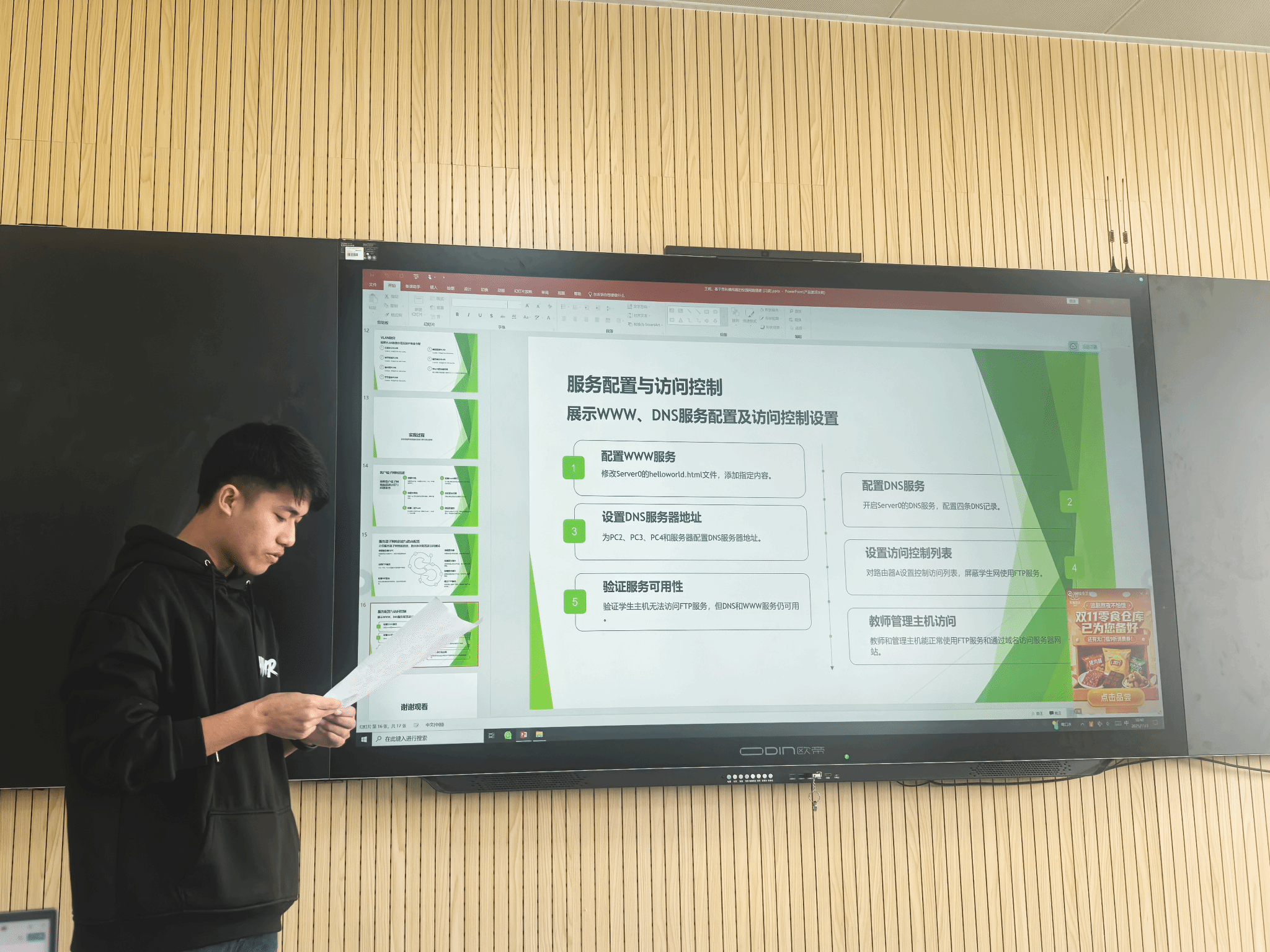 答辩现场,智慧大屏幕上展示着留学生们精心准备的毕业设计作品。他们以流畅的中文配合图文并茂的PPT,详细阐述了各自项目的技术要点。这些项目涵盖了基础网络搭建、服务器系统管理、服务器运维等技术领域,展现了留学生们将所学知识应用于解决实际问题的能力。