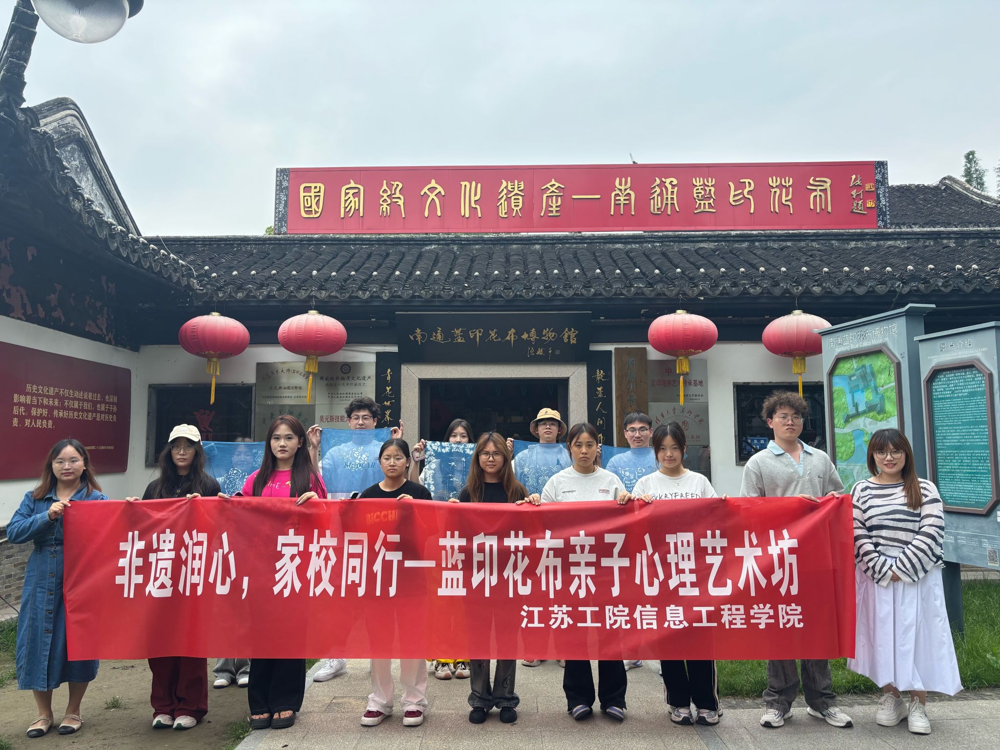 6月11日下午,信息工程学院心理协会组织学生走进南通蓝印花布博物馆,开展了一场融非遗传承、心理教育与家校联动于一体的特色实践活动。活动由心理辅导员徐洁、信者无疆工作室主持人夏晶晶带队,特别邀请国家励志奖学金获得者与24级学生结对参与,以“传帮带”形式共赴文化之旅。