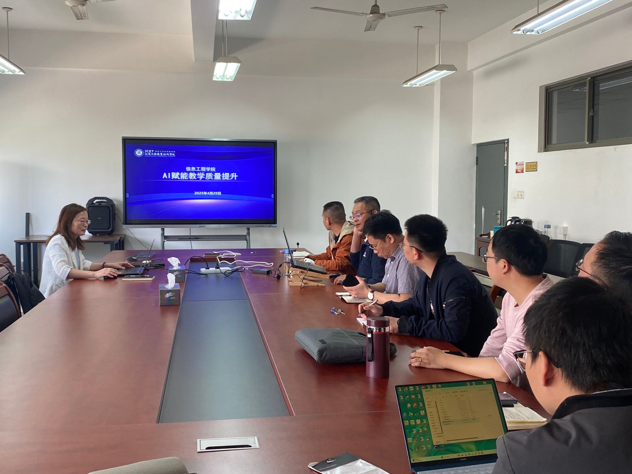 为深化教育教学改革,推动人工智能与课堂教学深度融合,信息工程学院于4月29日在强毅楼304会议室举办"AI赋能教学质量提升"专题分享会。副院长王欣携6位专业负责人出席会议,共同探讨人工智能技术重构教学场景的创新路径。本次分享会由庄国强主讲,聚焦数字人课程助手、智能自学体系、编程能力拓展三大核心模块,为构建未来课堂提供可复制的实践方案。