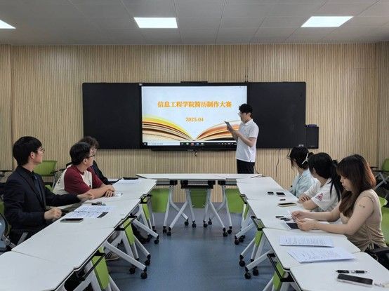 为提升学生求职竞争力,夯实就业基础,4月30日,信息工程学院举办简历制作大赛。大赛由辅导员李卓遥、夏晶晶、许春蕾老师担任评委,就业辅导员韩政主持,全院学生积极报名参与。