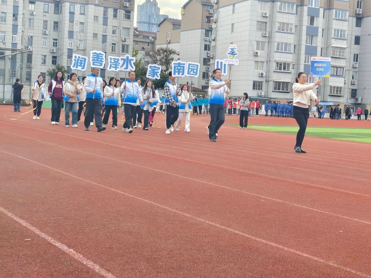 11月23日下午,“党建引领聚合力 奋勇争先展风采”学田街道第十三届趣味运动会在工院南校区操场成功举办。崇川区政协副主席姜永良,崇川区总工会党组书记、主席张柏良,学田街道党工委书记周智杰,党工委副书记、办事处主任黄小秋与街道领导班子成员出席了本次活动。来自学田街道七个社区、南通水务集团、金鹰圆融、三附小学等30余家单位共800余人参与其中,信息工程学院励志学社、学生会以及部分家庭经济困难学生也参加了本次活动。