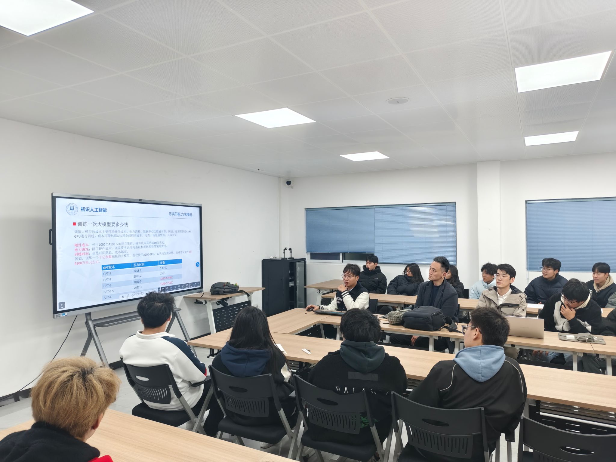 丁雨华博士围绕人工智能的定义、要素、分类等内容进行讲解,由浅入深,对当下流行的生成式人工智能在生产生活中的应用做了详细讲解,并通过人工智能大模型生成的文本和视频让同学们对人工智能算法有了更深的了解。最后,丁雨华博士给同学们讲解了人工智能发展面临的机遇和挑战。