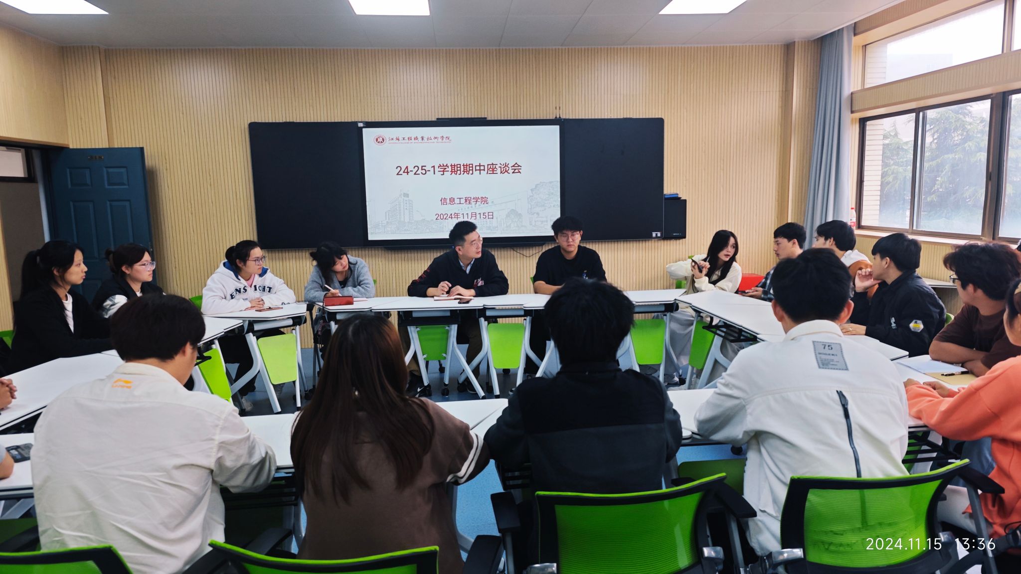 为深入了解学生的学习生活,促进学风建设,提高教学质量,11月14日、15日,信息工程学院分别在海门、崇川两校区组织召开本学期期中学生座谈会,近60名学生代表及教务员彭毅老师参加了座谈会,信息工程学院关工委委员王欣参加本次活动。
