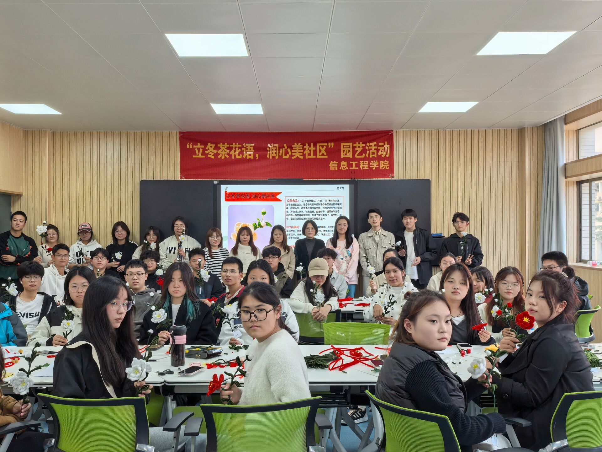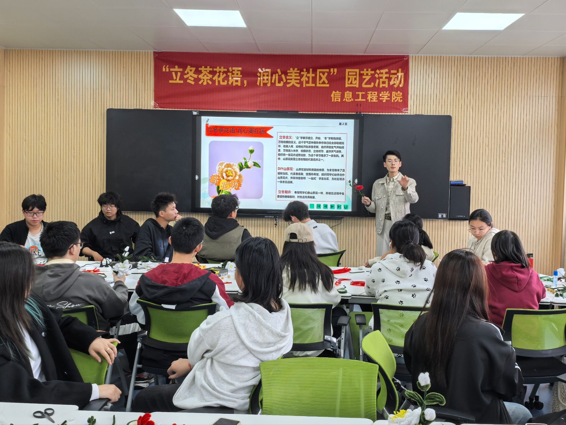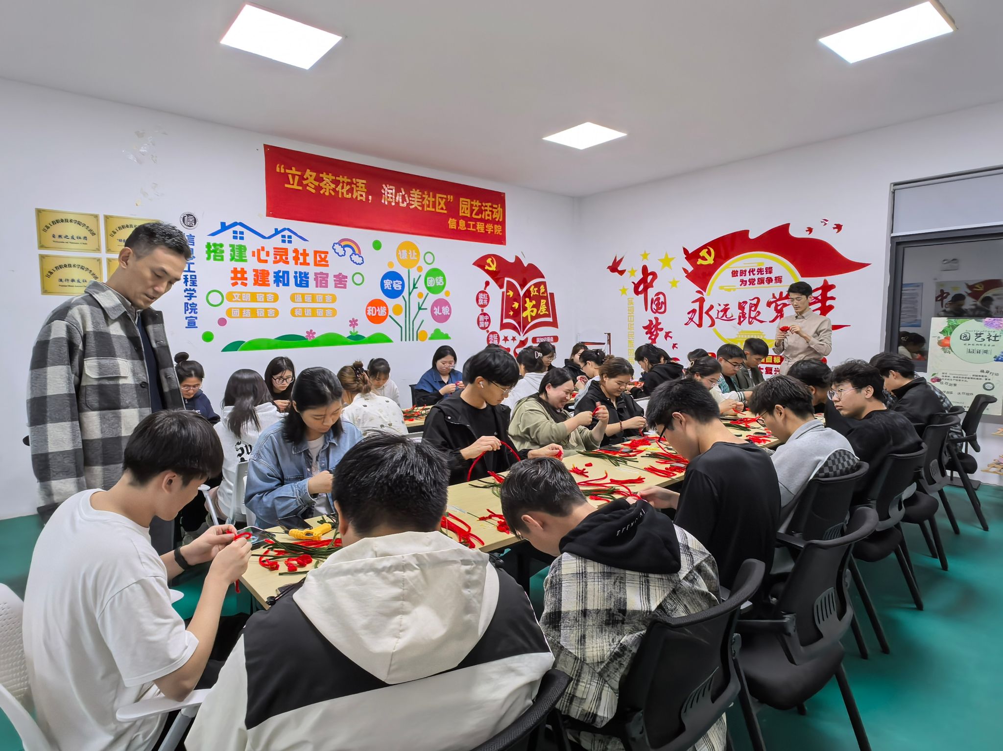 为深化“一站式”学生社区建设,挖掘中华传统节日文化内涵,11月13日—15日,信息工程学院“绿意育人”园艺社团和红石榴辅导员工作室在崇川、海门两校区学生社区举办“立冬茶花语,润心美社区”活动。信息工程学院党总支副书记、关工委副主任高飞、学工处詹蕾老师、相关学院辅导员和学生代表参加活动。