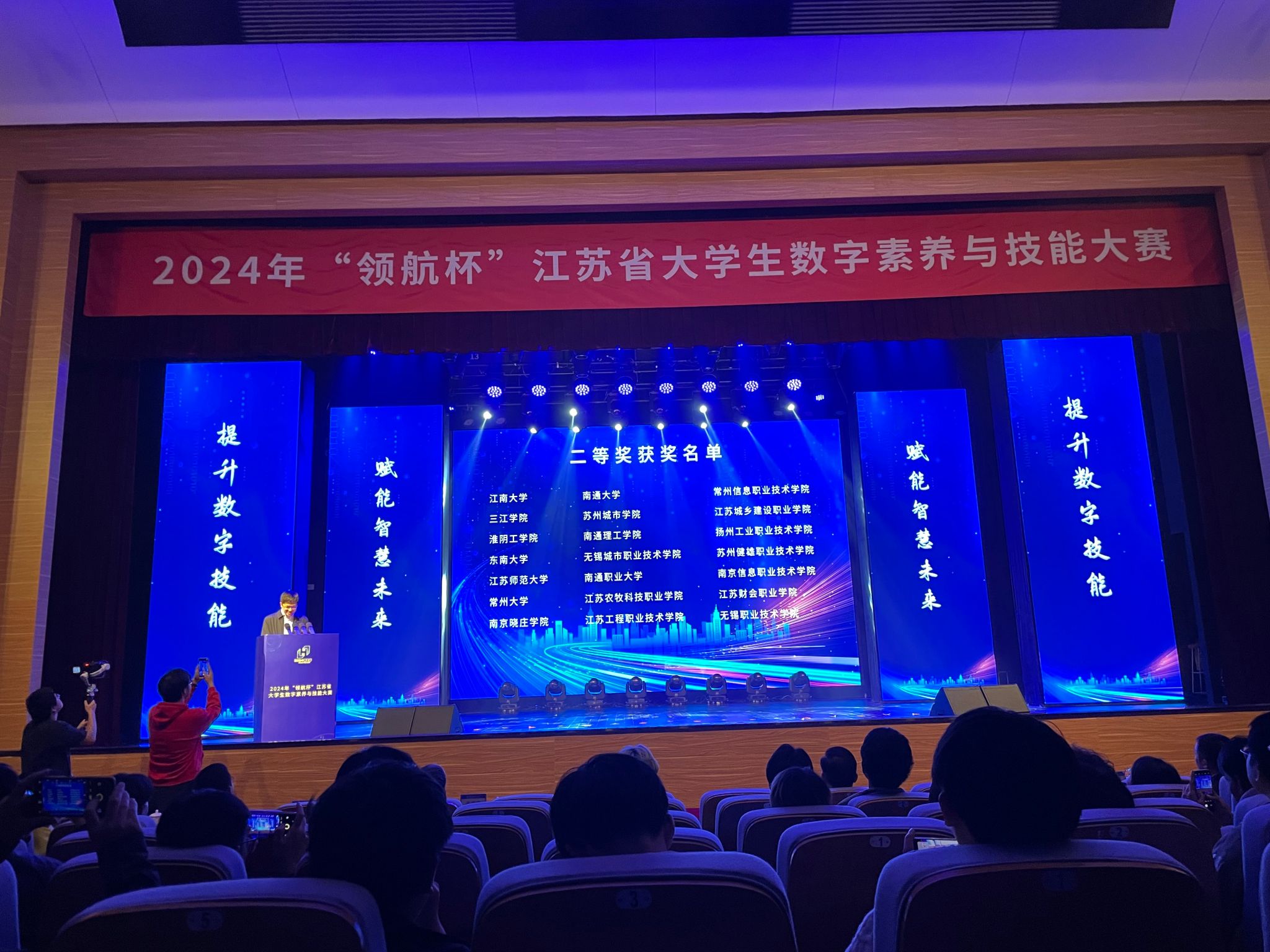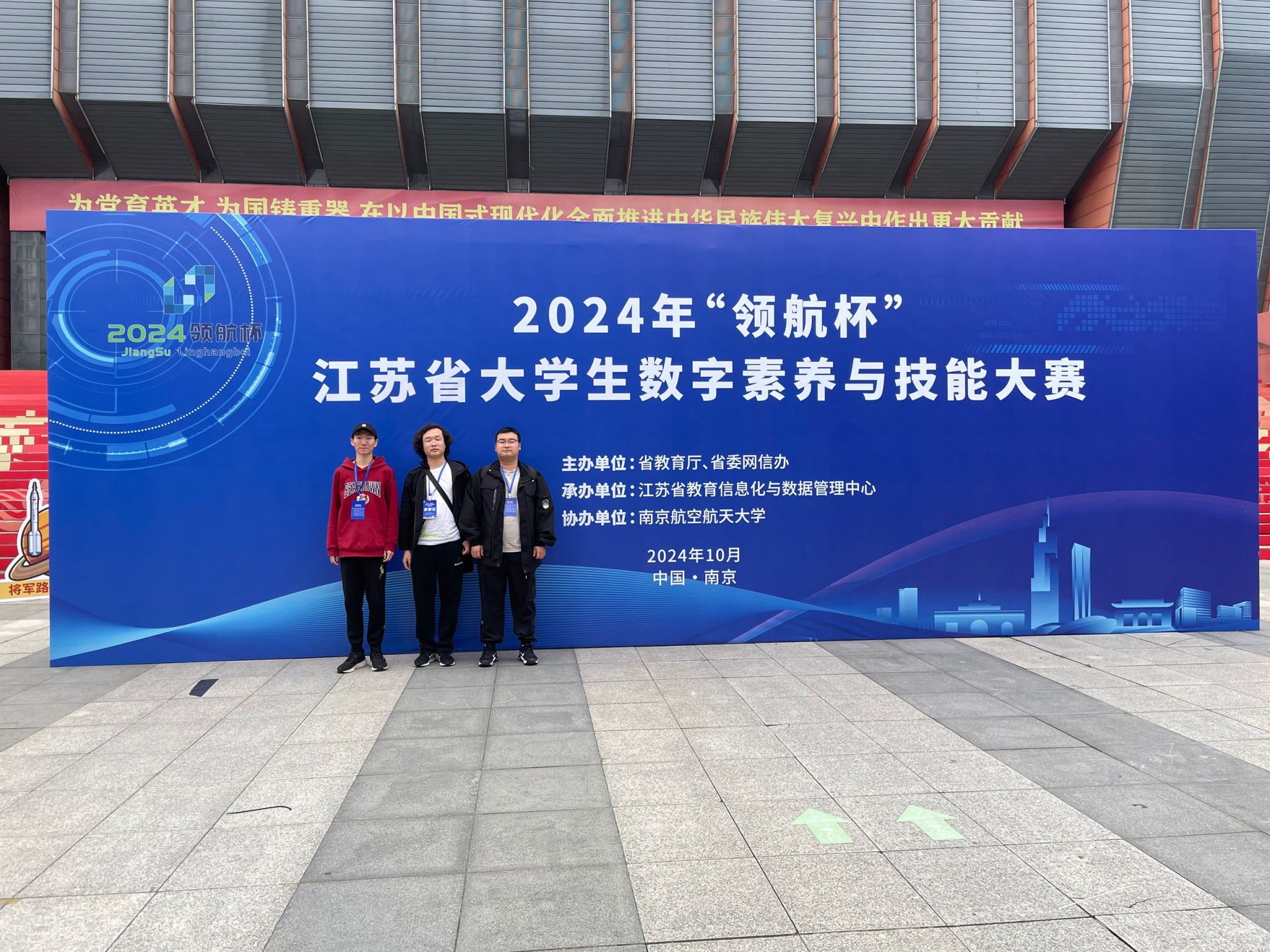 10月27日,由省教育厅和省委网信办主办,江苏省教育信息化与数据管理中心承办的2024年“领航杯”江苏省大学生数字素养与技能大赛线下决赛在南京航空航天大学举行。我院由王科老师指导,学生刘俊贤、崔昊宇、陶嘉昊组成的团队在大赛中获得二等奖。