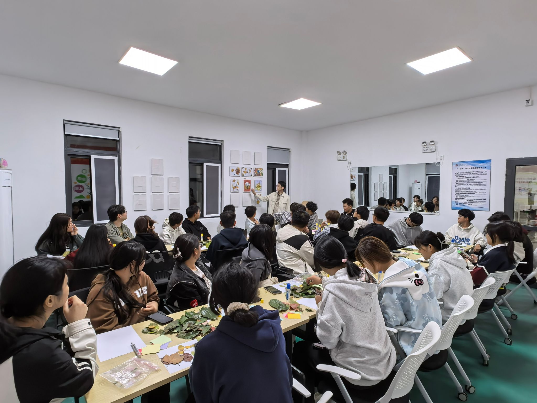 活动开始,社团指导老师韩政介绍了赏菊、吃柿子、煲羊肉等霜降习俗和节气古诗,鼓励同学们通过此次活动了解校园花木,提高发现美和创造美的能力。24计应五班旦木珍次旺表示,这次活动不仅是一次很有意义的园艺活动,而且还能学到很多关于中华传统节气的人文风俗。活动结束后,同学们将优秀作品展示在阜生社区“红色家园”活动室,美化学生社区环境。