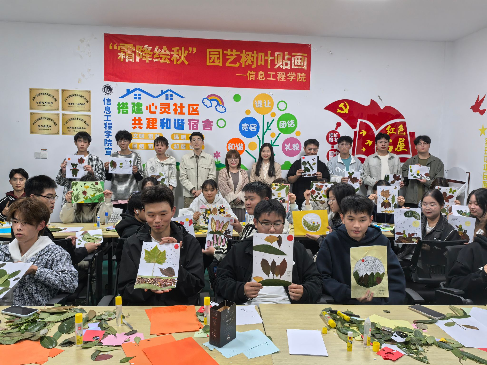 为深化“一站式”学生社区建设,帮助学生提高审美能力,10月23-26日,信息工程学院在崇川、海门两校区学生社区举办“霜降绘秋”主题园艺活动。学院党总支书记、关工委主任朱建泉,党总支副书记、关工委副主任高飞,各学院辅导员代表,“绿意育人”园艺社团学生代表参加。