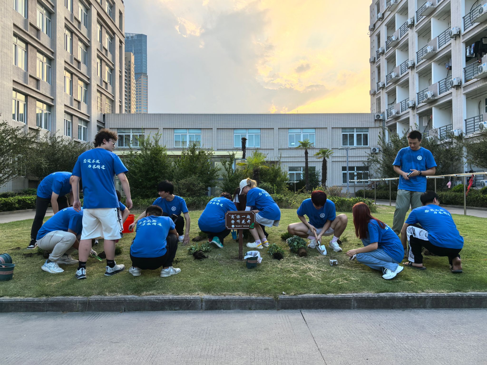 主题活动分别在崇川广生社区和海门阜生社区开展。活动期间,韩政给大家讲解了教师节的由来和新生社区的划分,要求同学们分工合作,以实际行动为建设美丽校园出一份力。一部分学生将园艺盆栽送到“一站式”学生社区服务大厅,精心装饰老师办公环境,表达对老师的感恩之情;另一部分学生将园艺绿植栽于新生社区空地和花箱,帮助绿化美化新生的生活环境。