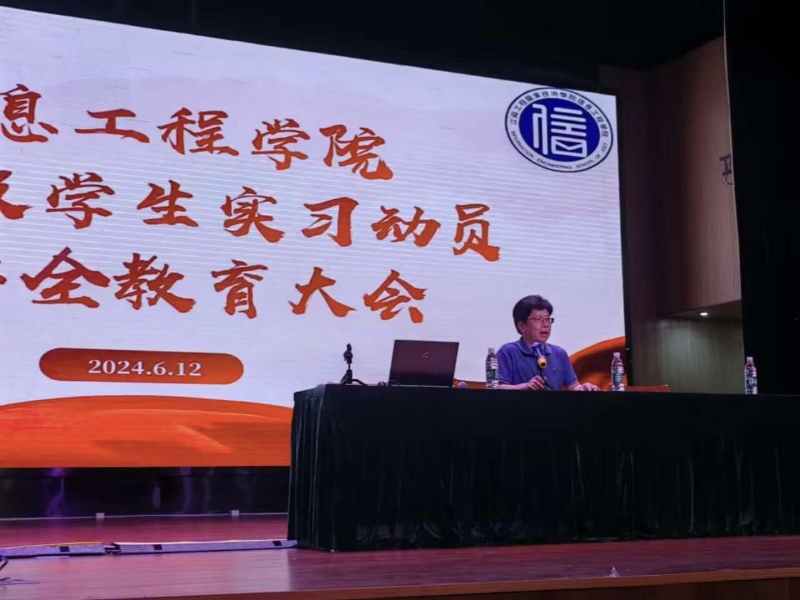 为加强同学们对实习安排和就业新形势的了解,提升学生在实习期间的安全防范意识,帮助同学们厘清思路, 6月12日,信息工程学院在海门800人报告厅召开2022级学生实习动员暨安全教育大会。信息工程学院党总支书记朱建泉、副院长范君出席会议,全体22级学生、辅导员、班主任及部分企业代表参加会议,会议由秦亚杰主持。