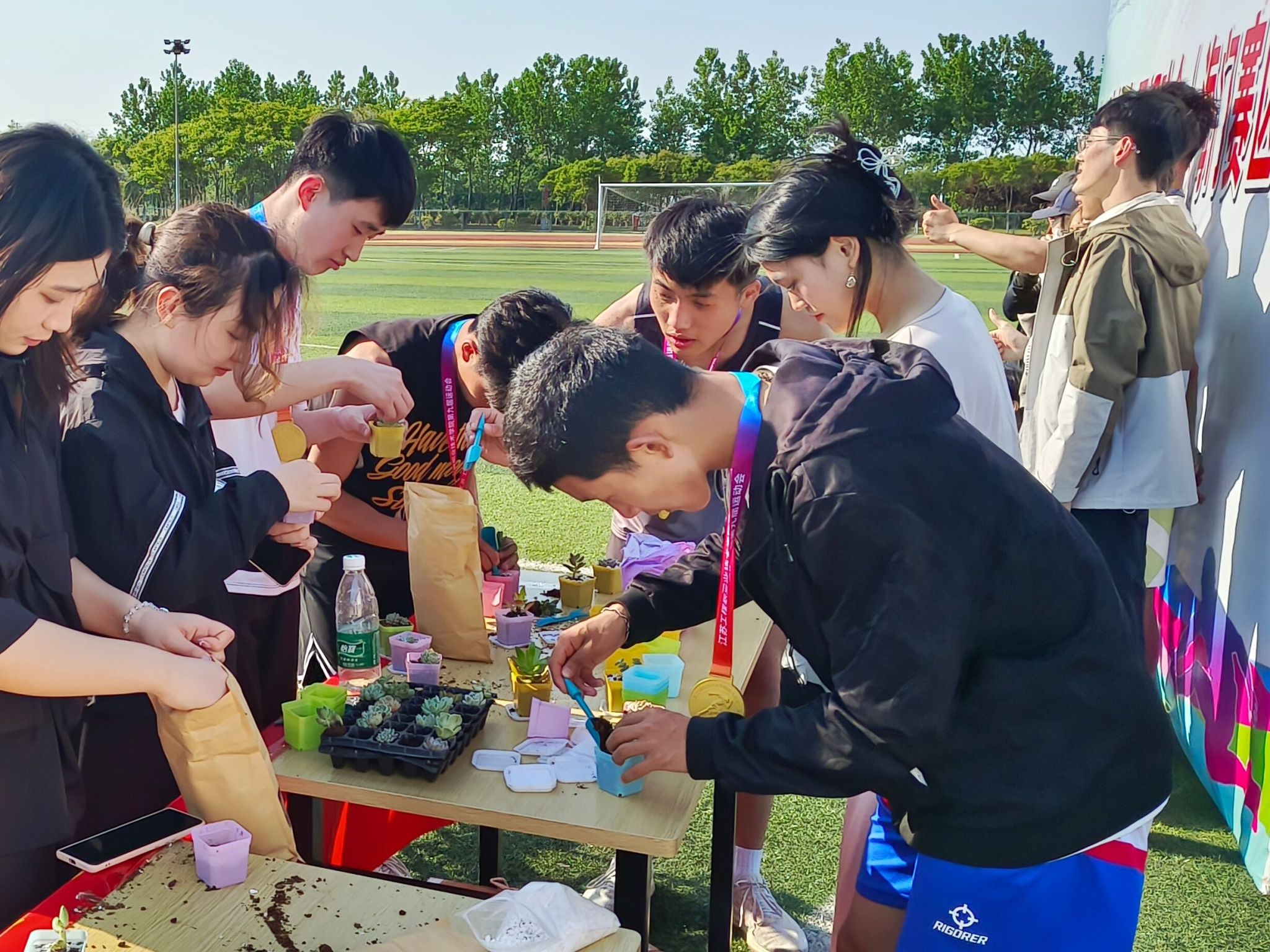 5月10日和17日,信息工程学院联合学生社区管理服务中心、纺织服装学院在两校区开展了“园艺与你相逢,共筑体育强国”主题活动。学工部崇川学生社区中心主任李慧娴,学工部海门学生社区中心主任陶茜茜,信息工程学院党总支副书记高飞,两校区辅导员韩政、孟诗凯、沈慧、顾胜男和杨帆等参加了此次活动。