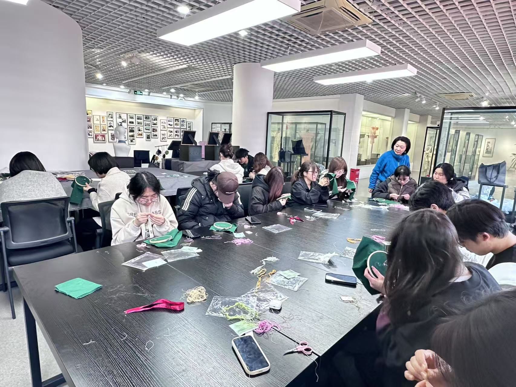 3月20日下午,信息工程学院心社梦工厂网络思政工作室主办的艺术疗愈活动在文博馆沈寿刺绣技艺展厅上演。此次活动以“沈绣传心·美愈新生”为主题,国家级非遗传承人张蕾老师、信息工程学院辅导员、工作室负责人孟晋老师、经济管理学院辅导员顾胜楠老师以及30名学生共同参与。