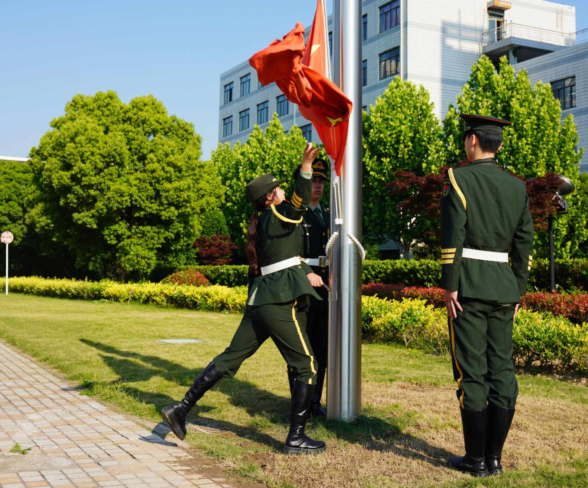 5月12日,信息工程学院开展信仰公开课——“青春心向党,旗帜耀征程”升旗仪式。信息工程学院党总支书记朱建泉、党总支副书记高飞、校团委副书记张禧嘉、信息工程学院辅导员代表、学院24级入党积极分子、新团员参与本次活动。
